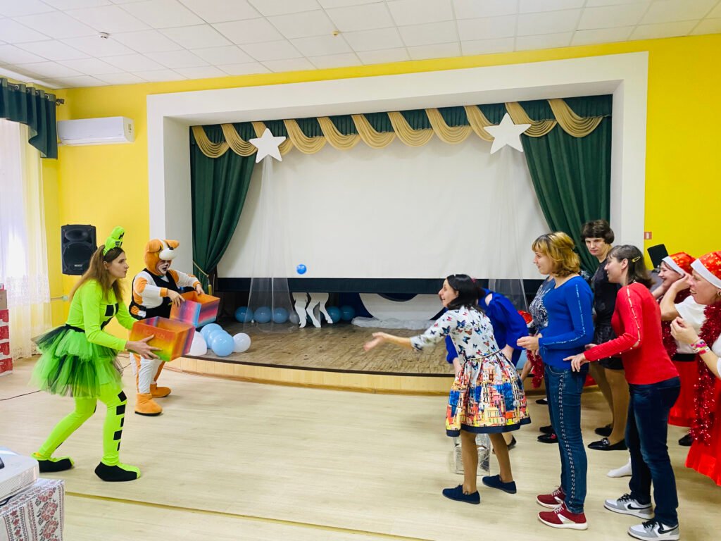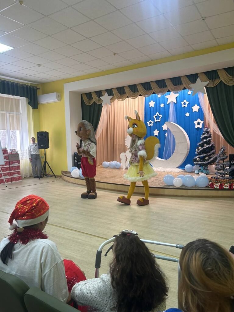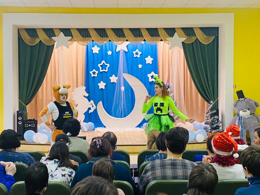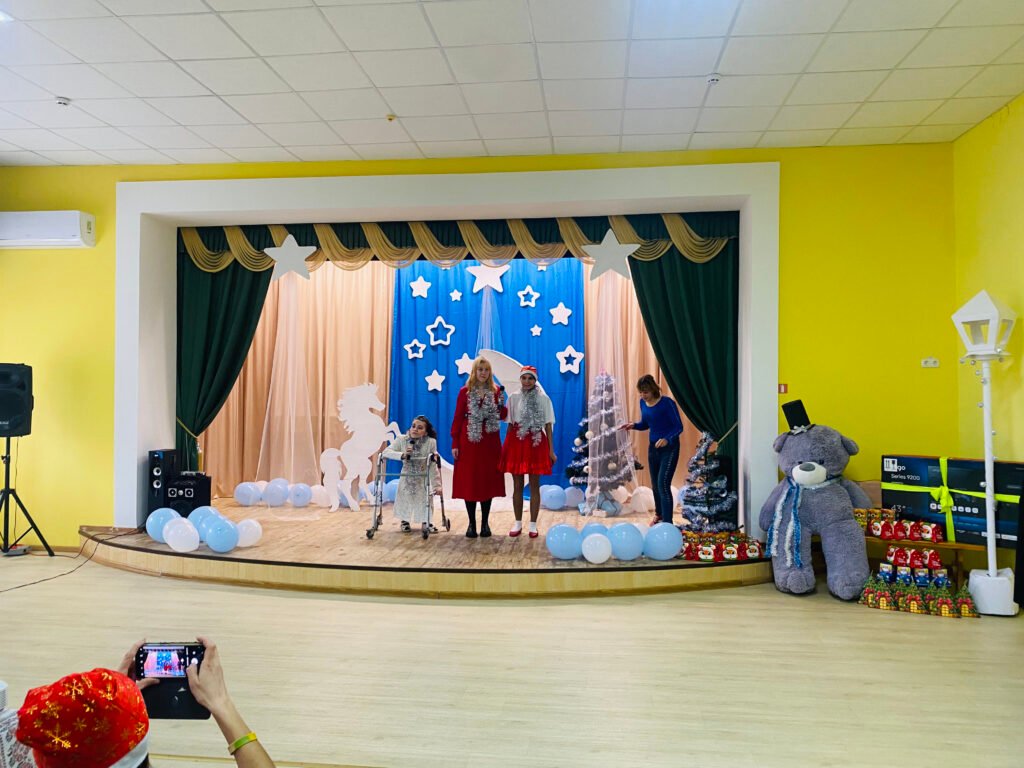 Особливе місце у святі посіла сцена, що перетворилася на справжнє зимове диво. Саме вона створила казковий настрій у залі. Над оформленням декорацій працювали інструктор з праці Наталія Борсук та вихованка першої молодіжної групи Анастасія Новак. Їхня майстерність і творча фантазія оживили сцену ніжними зимовими відтінками — блакитним, білим та сріблястим. На тлі сяяли зорі, величаво здіймався місяць, а поруч красувався символ прийдешнього 2026 року — кінь. Декоративні елементи, легкі й витончені, створювали відчуття казки, а стилізовані ялинки додавали святкової урочистості.