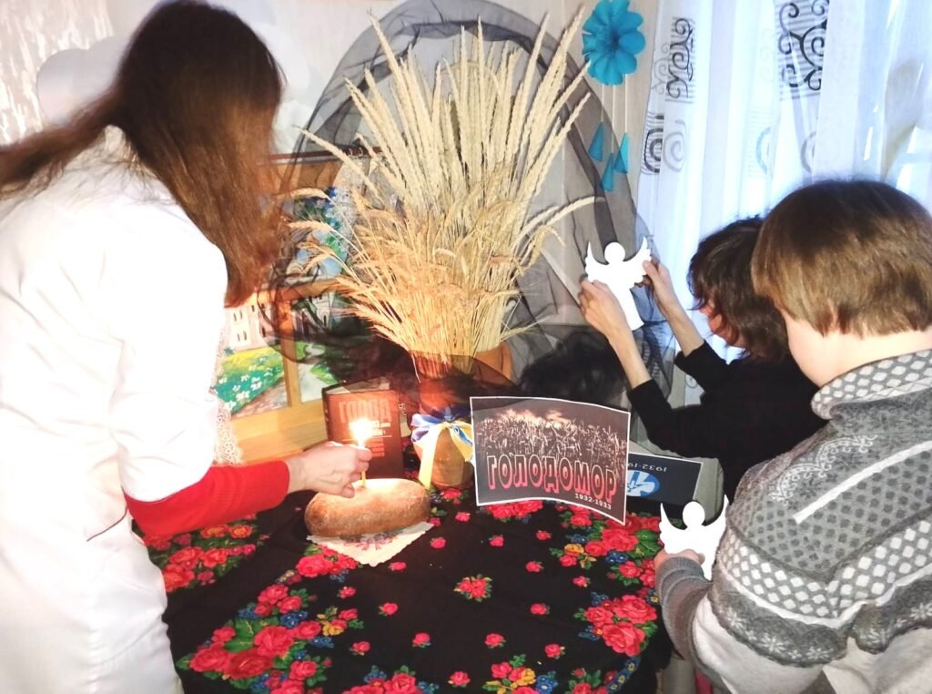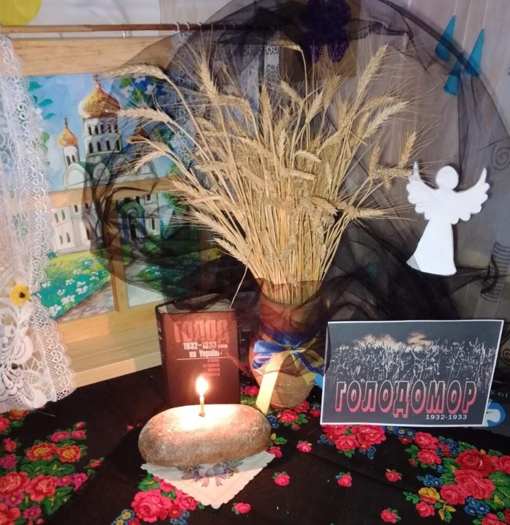 Окрім того, вихованки оформили невеликий куточок пам’яті та скорботи, який став окремим простором для роздуму, де кожен може замислитися над масштабом утрат мільйонів безвинно загублених життів у роки Голодомору.